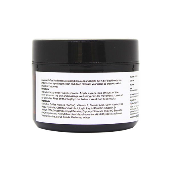 Ayuveer Coffee scrub exfoliates dead skin and helps get rid of blackheads, tan and impurities. It polishes the skin and deep cleanses your pores so that your skin is smooth and glowing.